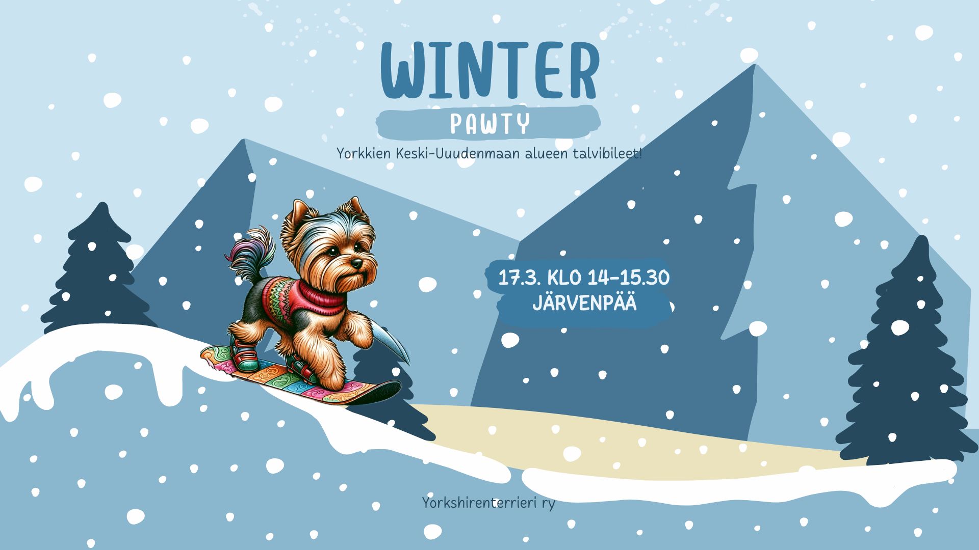 Julkaistu 26.2.2024 alkuperäisessä koossa 1920 × 1080 sivulla Yorkkitreffit – Winter Pawty- KESKI-UUSIMAA.